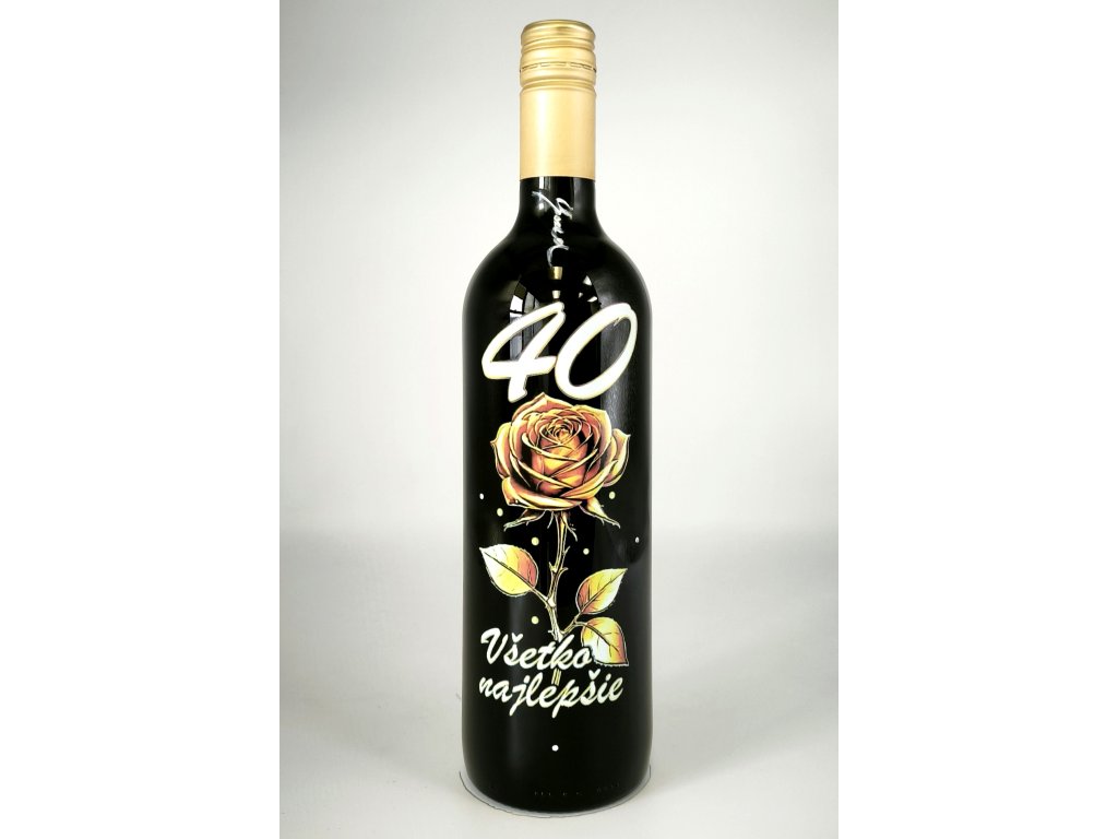 Toto dekoratívne víno s gravírovaním a kvetinovým motívom je ideálnym darčekom na oslavu 40. narodenín – veku, ktorý symbolizuje stabilitu, zrelosť a všetky životné skúsenosti, ktoré nás formovali.Kvetiny na fľaši reprezentujú krásu, ktorá prichádza so sebavedomím a rovnováhou, ktoré nás sprevádzajú v tejto etape života.