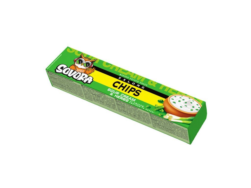 Zemiakové chipsy s príchuťou smotany a byliniek 50g SovoraVšetko začína zemiakmi z farmy, starostlivo pripravenými a ochutenými. Potom pridáme vznešenú chuť smotany a byliniek. Tak vznikajú zemiakové chipsy Sovora – dokonale chrumkavé a chutné. Šťastie v každom kúsku.